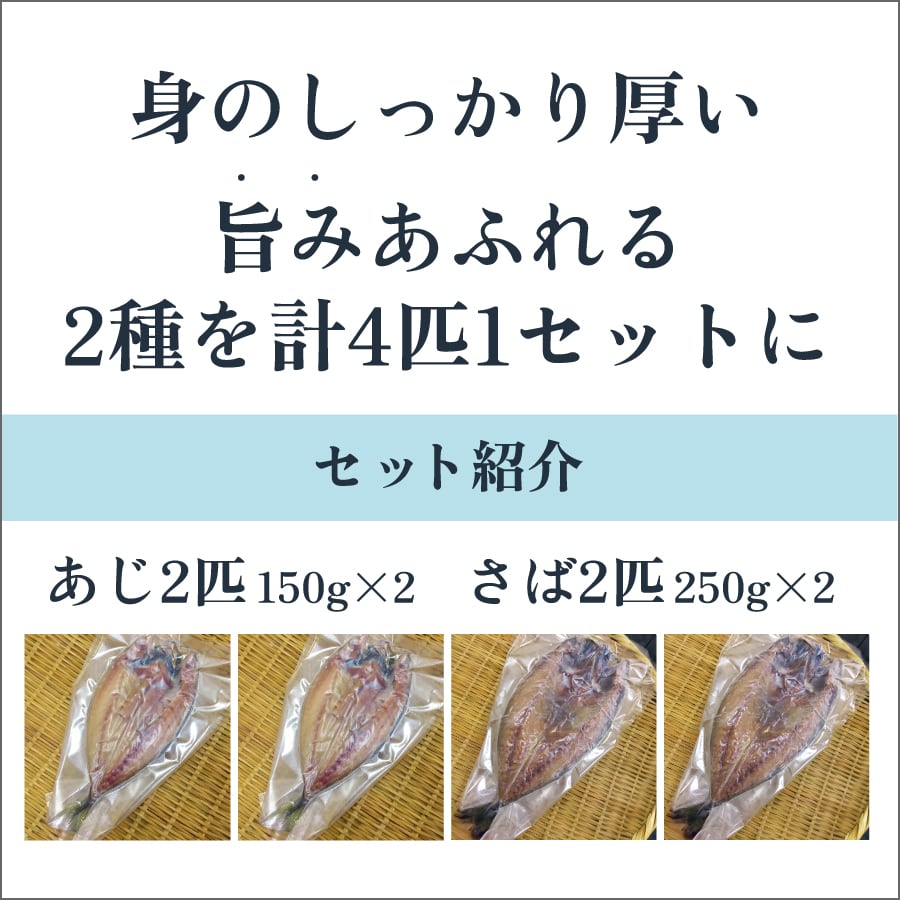 九州産あじ開き150g×2匹と国産さば開き250g×2匹
